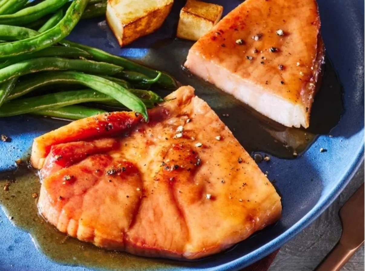 2. Cook ham steak in a large skillet over medium heat until browned, 3 to 4 minutes per side.